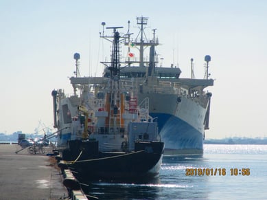 比べてみると、「資源」(写真奥)の横幅が大きく、特殊な船であることがよく分かりますね。
