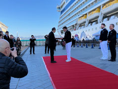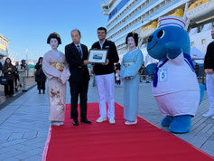 また、清水港へは初寄港となるため、初寄港歓迎式典が行われました。清水港からは七宝焼きの額縁を贈呈しました!