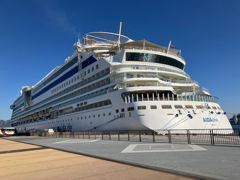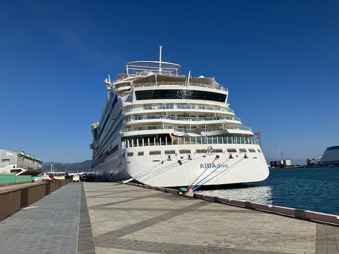 令和8年1月16日(金)、クルーズ船「アイーダ・ディーバ」(全長251.89m、総トン数69,203t、乗客定員2,566人)が清水港へ初入港しました!